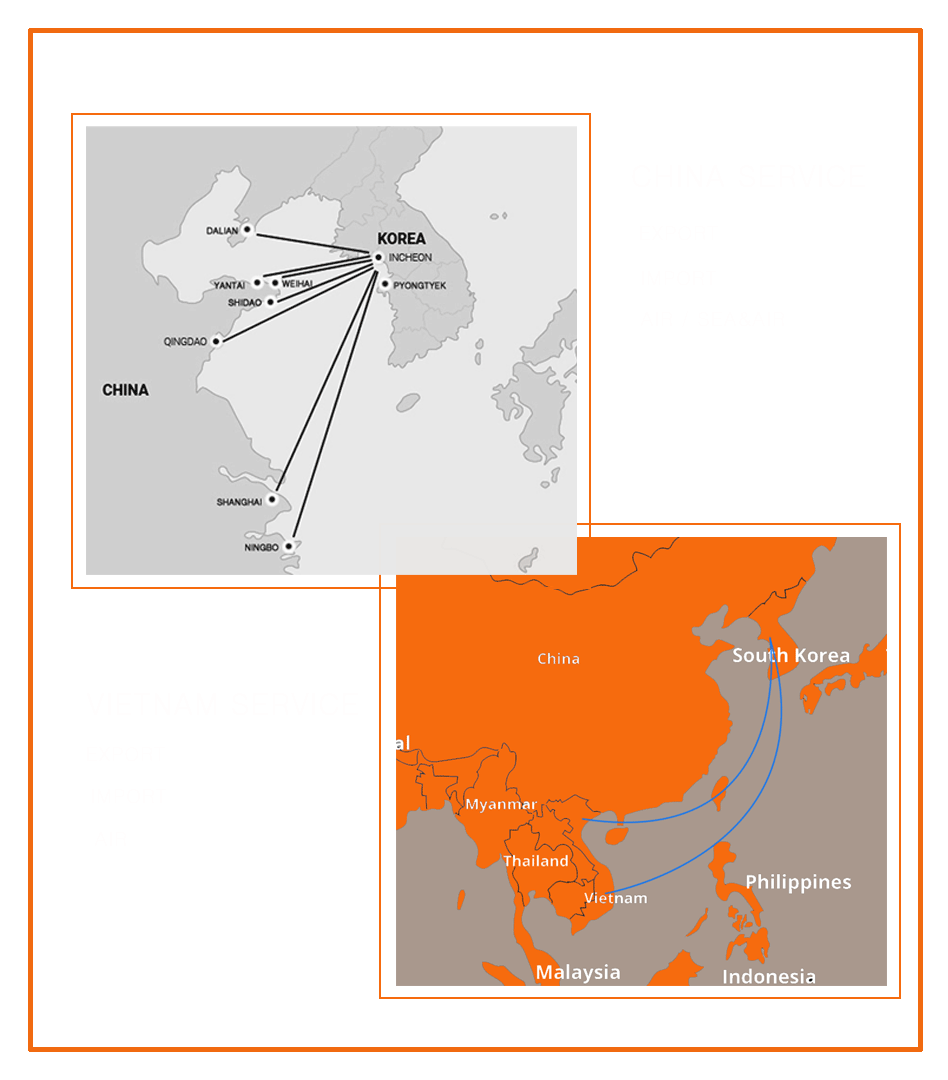 당사 상해지사는 2006년부터 한국-중국 및 중국-베트남간 원.부자재 와 완제품 운송 SERVICE를